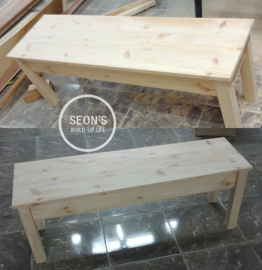 식탁용 장의자(긴의자) 만들기 먼저 만든 식탁의 의자로 활용하기 위해 식탁사이즈에 맞는 장의자를 만들었습니다. 재료 가공 장의자를 만들기 위해 원목 집성 및 커팅을 하였습니다. 사진은 상판을 집성하기 위해 원목을 재단하는 사진이네요. 집성할때 쓸 클램프 공구들도 보이고요 저는 나무를 판재로 집성할때 주로 목다보 또는 목재도미노를 이용하여 고정하고 목공본드로 접착을 합니다. 목공본드를 바른후 클램프를 활용해 단단히 고정하여 줍니다. 본드 제조사마다 굳는 속도는 다르지만 경험상 보통 30분에서 1시간정도면 고정이 가능한 것 같습니다. 의자 다리를 만들기 위해 재료를 가공했습니다. 가조립 재료들이 사이즈가 잘 맞는지 확인하기 위해 가조립을 해봅니다. 아주 잘 맞네요 조립 연결부위에 목공본드을 칠하고 목다보 사..